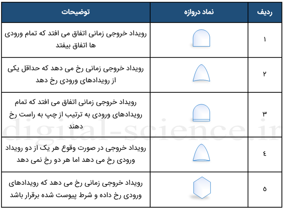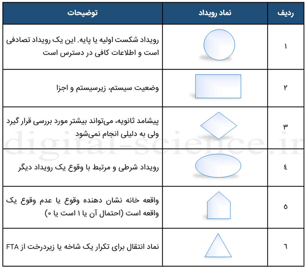 در جدول زیر میتوانید تعدادی از پرکاربردترین نمادهایی که برای رویدادها در روش FTA بکار میرود را مشاهده نمایید: