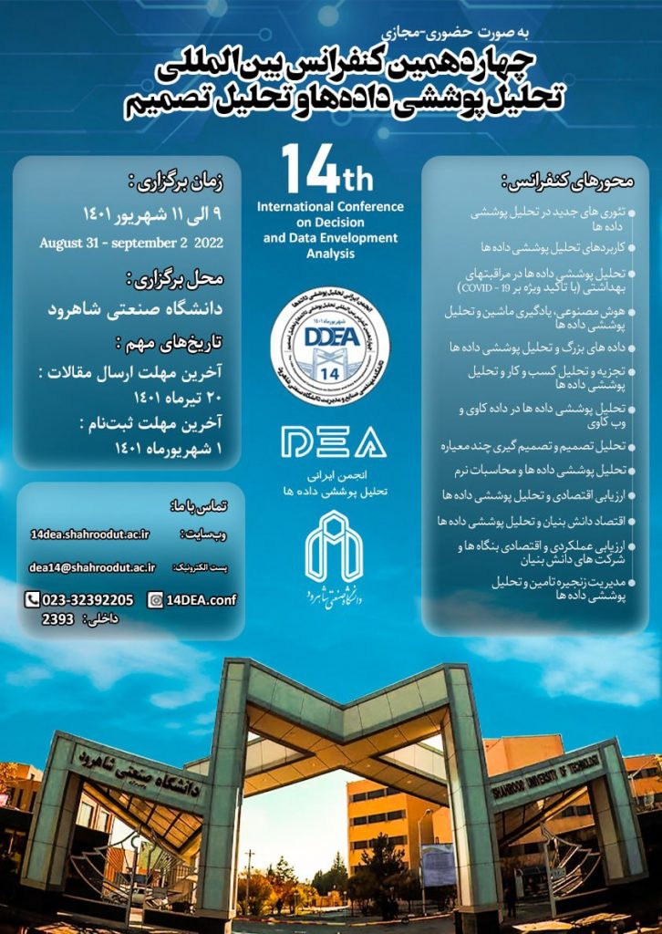 انجمن ایرانی تحلیل پوششی داده ها اقدام به برگزاری چهاردهمین کنفرانس بین المللی تحلیل پوششی داده ها خواهد نمود.